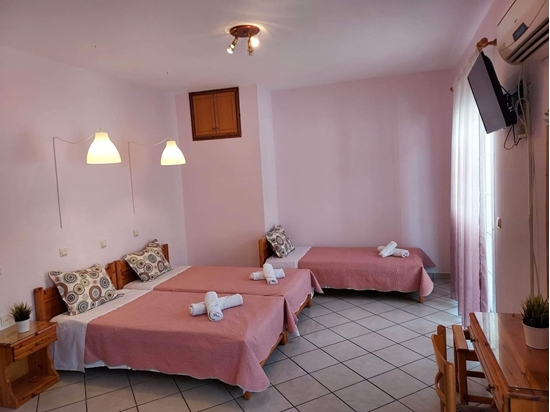 Вила Александра е лоцирана во Лименас во близина на шеталиштето со таверни и дуќани , на 300 м. оддалеченост до најблиската плажа и околу 700 м. од градската плажа. Вилата е поскромно уредена и располага со 1/2 и 1/3 студија, опремени со кујна, ТВ, клима (со доплата),Wi – Fi и сопствена тераса. Вилата нема сопствен паркинг, но има паркинг во близина.