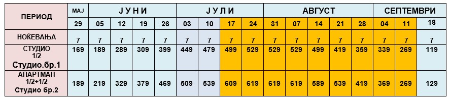 ЦЕНОВНИК ЗА НАЕМ НА СТУДИО ЗА 7 НОЌИ