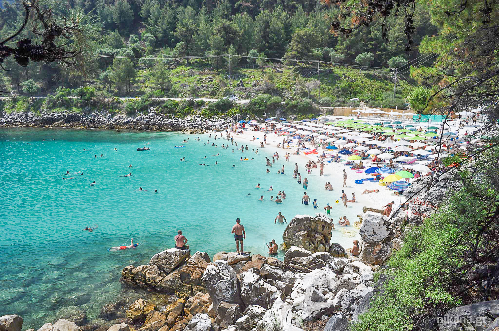 Вила “ШАРК“ лоцирана во Скала Потамиа  на оддалеченост околу 30 метри од плажата Голден бич.Извонредна местоположба на вилата која излегува на една од најубавите плажи на островот.На само неколку метри од вилата има супермаркети,ресторани,таверни ….